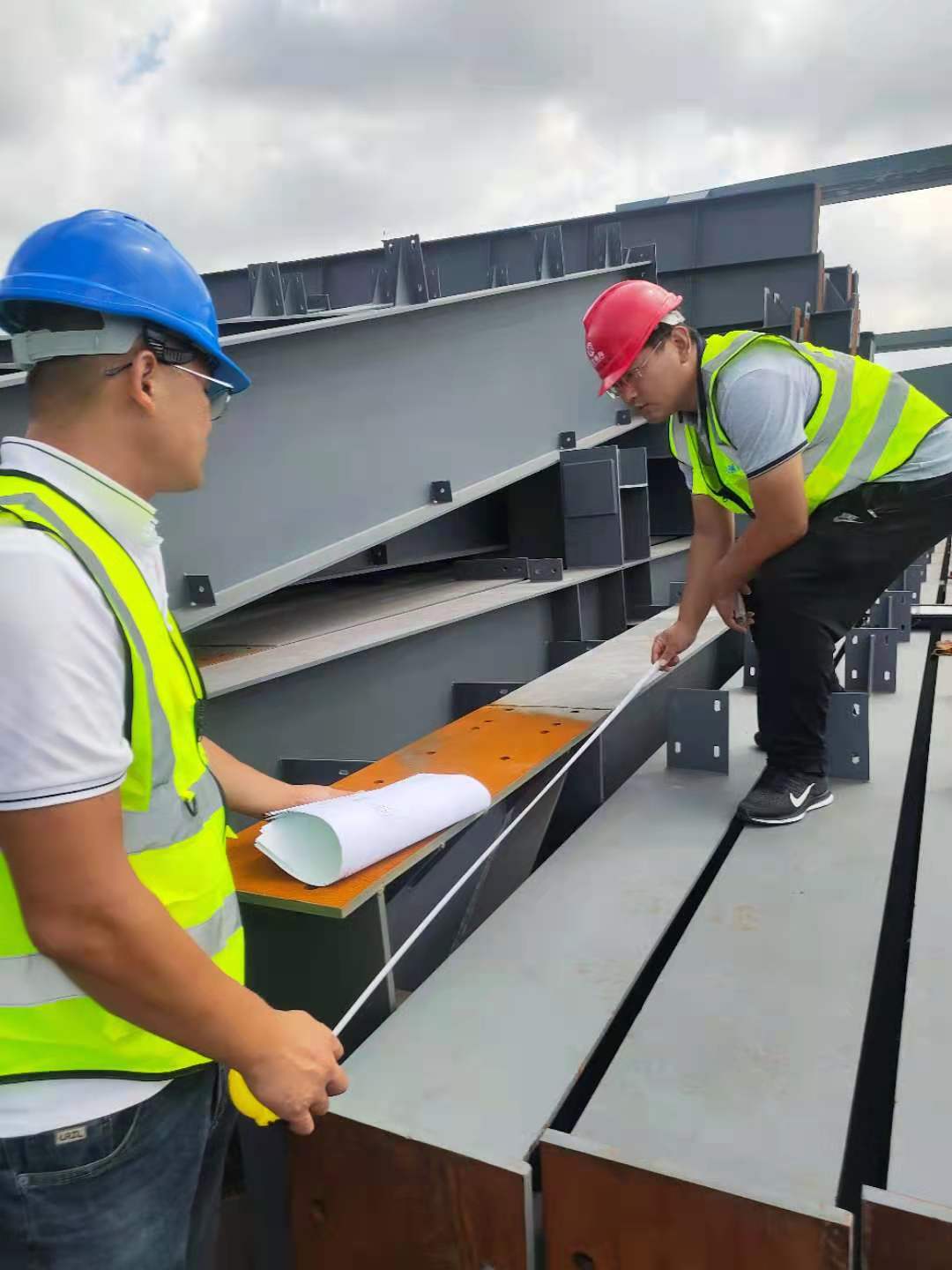 煙臺(tái)鋼構(gòu)工業(yè)廠房青易科1#車間工地節(jié)點(diǎn)內(nèi)部驗(yàn)收—煙臺(tái)旭升鋼結(jié)構(gòu)